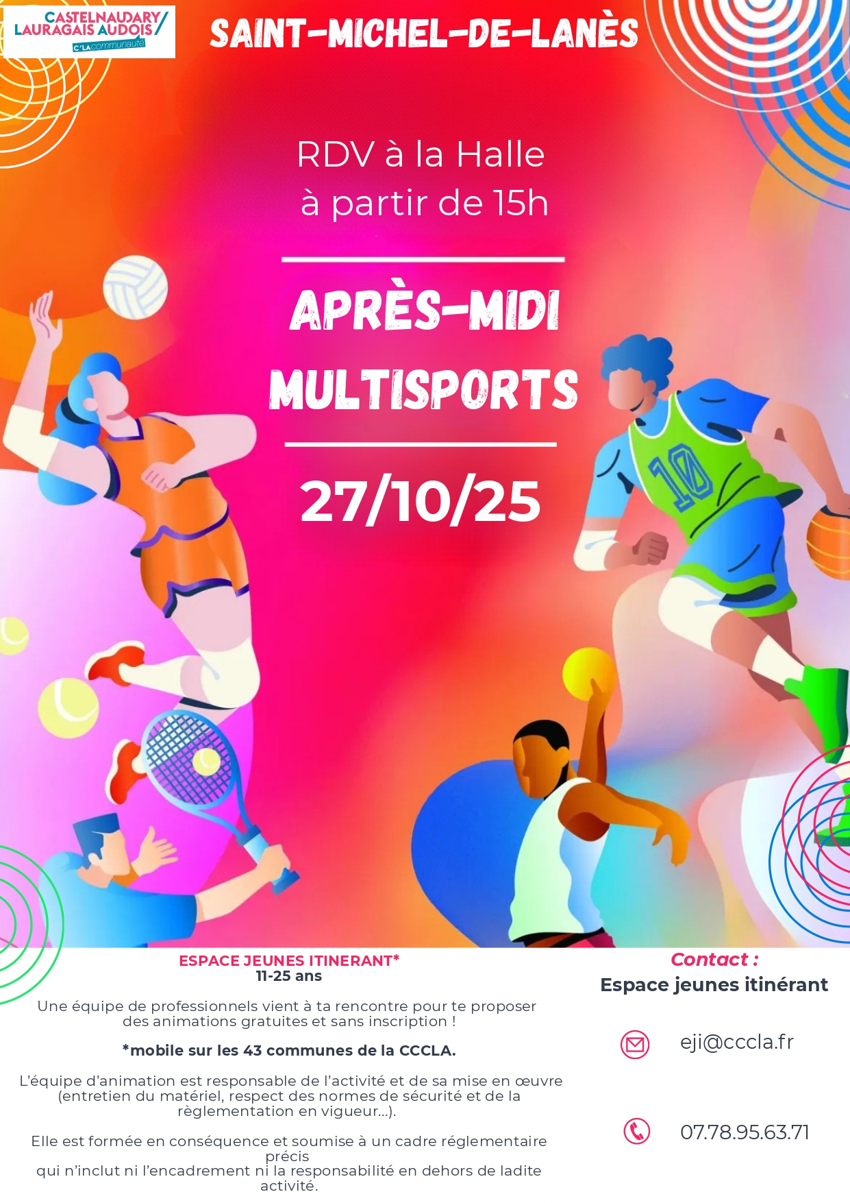 Le 27/10/25 à la halle à partir de 15h, une équipe de professionnels vient à ta rencontre pour te proposer des animations gratuites et sans inscriptions: